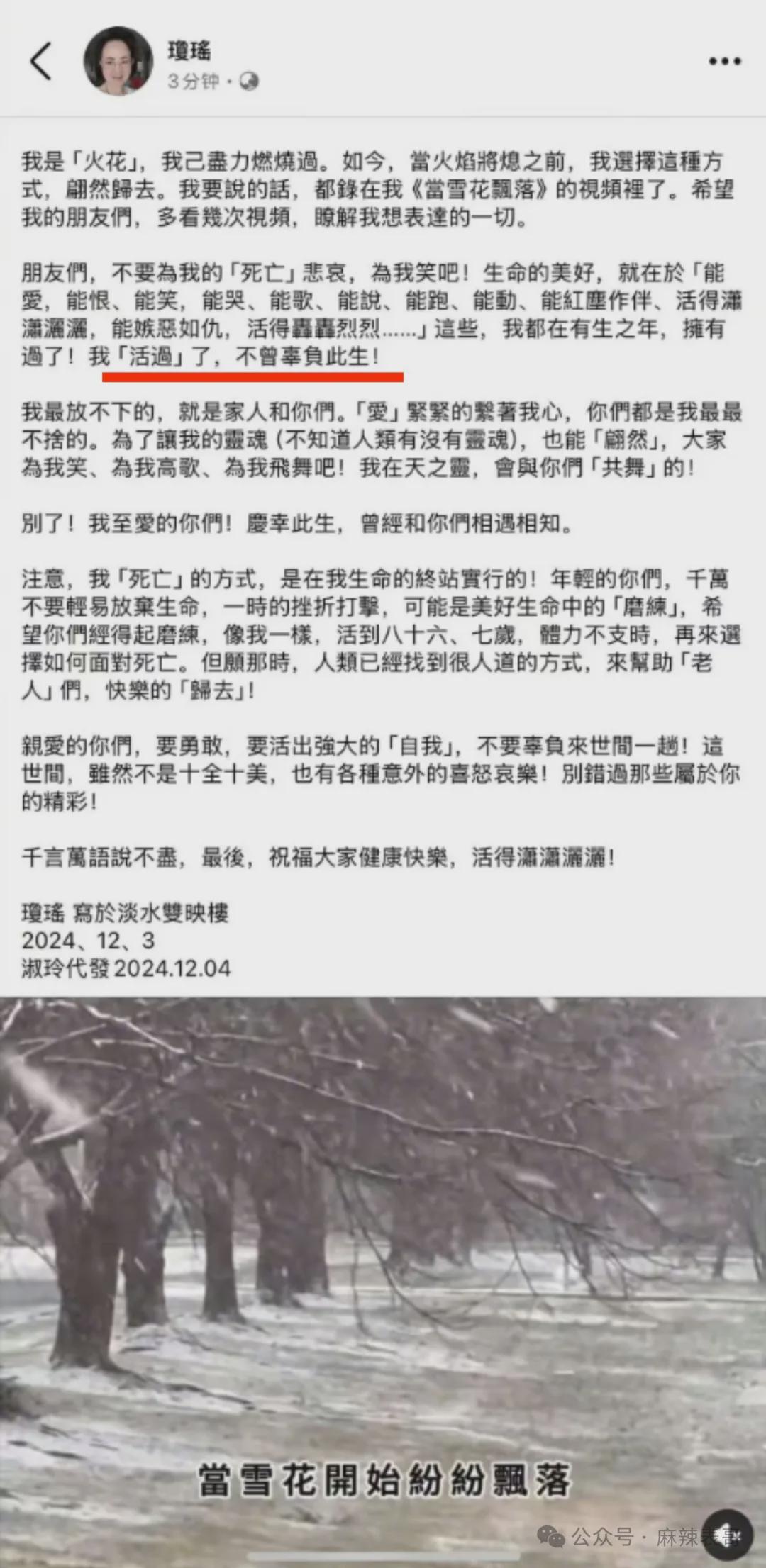 没想到,很快琼瑶的遗书被公开了,是助理秘书代发的。