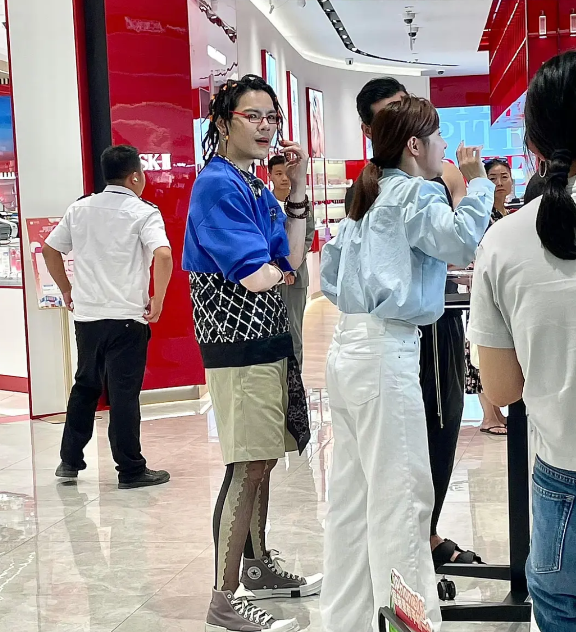 将视线聚焦在向佐的脸上,大家会发现他的妆容也越来越浓重。直播中,他化着色彩明显的眼影,鲜红的嘴唇格外抢镜。微卷的长发,精致且浓重的妆容,耳朵上搭配着造型精巧的耳饰,向佐这一次的女装造型堪称是“面面俱到”。可惜,不管在造型上如何努力,都遮不住他的阳刚之气,这也使得他整体气质不伦不类,雌雄难辨。