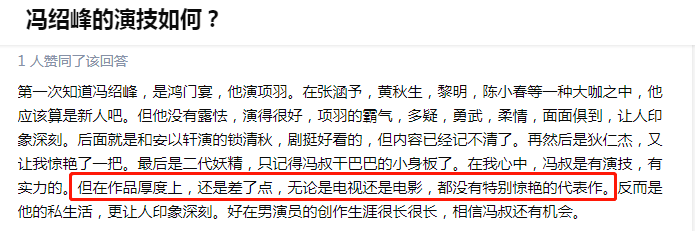 如同网友所言:冯叔是有演技、有实力的,只是在作品的厚度上差了点。