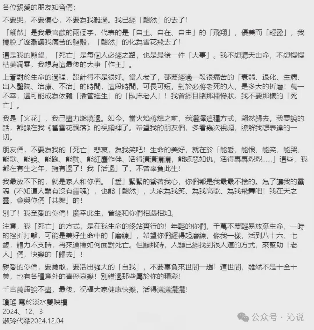 看到86岁琼瑶自杀的消息,还蛮惊讶的,毕竟颐养天年的岁数了,离死亡不过临门一脚,竟等不及了。