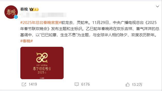 根据央视的透露,2025年的春晚主题为:“己巳如意,生生不息”,而春晚的吉祥物小蛇也是围绕巳字主题的,这让大家提前闻到了年味。