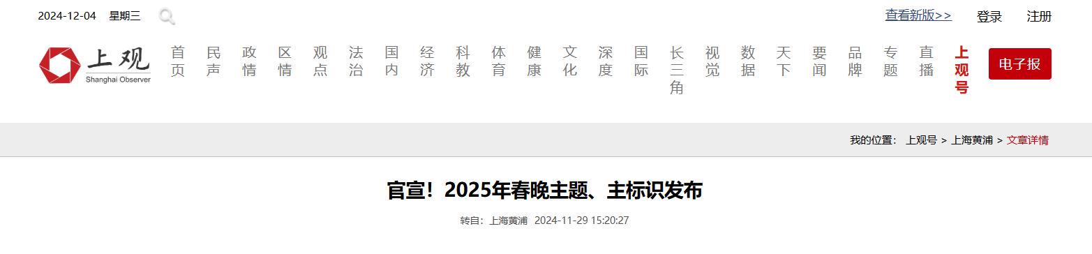 信息来源:上观新闻——官宣!2025年春晚主题、主标识发布,2024年11月29日