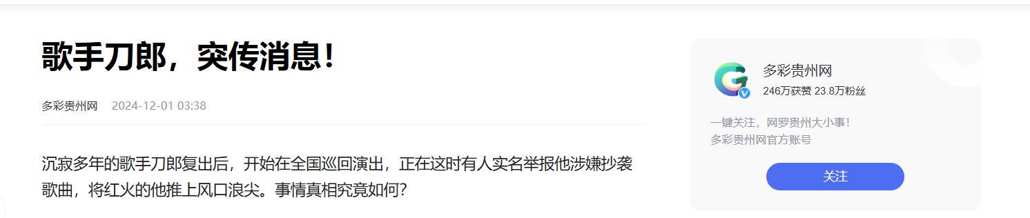 信息来源:多彩贵州网——歌手刀郎,突传消息!2024年12月1日