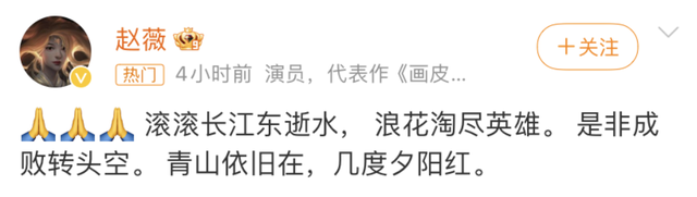 值得一提的是,隐身了三年多的赵薇,这次也因为琼瑶的离世回归了微博,令粉丝们激动不已,她确实该悼念一下,是琼瑶成就了她的演艺事业,把她带入这个圈子,但这不代表她能够复出。