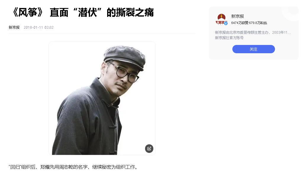 在剧里,郑耀先代号“风筝”,作为一名潜伏在国民党内部的共产党情报人员,他的一生都在为自己的信仰而战,为了完成任务,他不得不隐藏自己的真实身份,与敌人“同床异梦”。