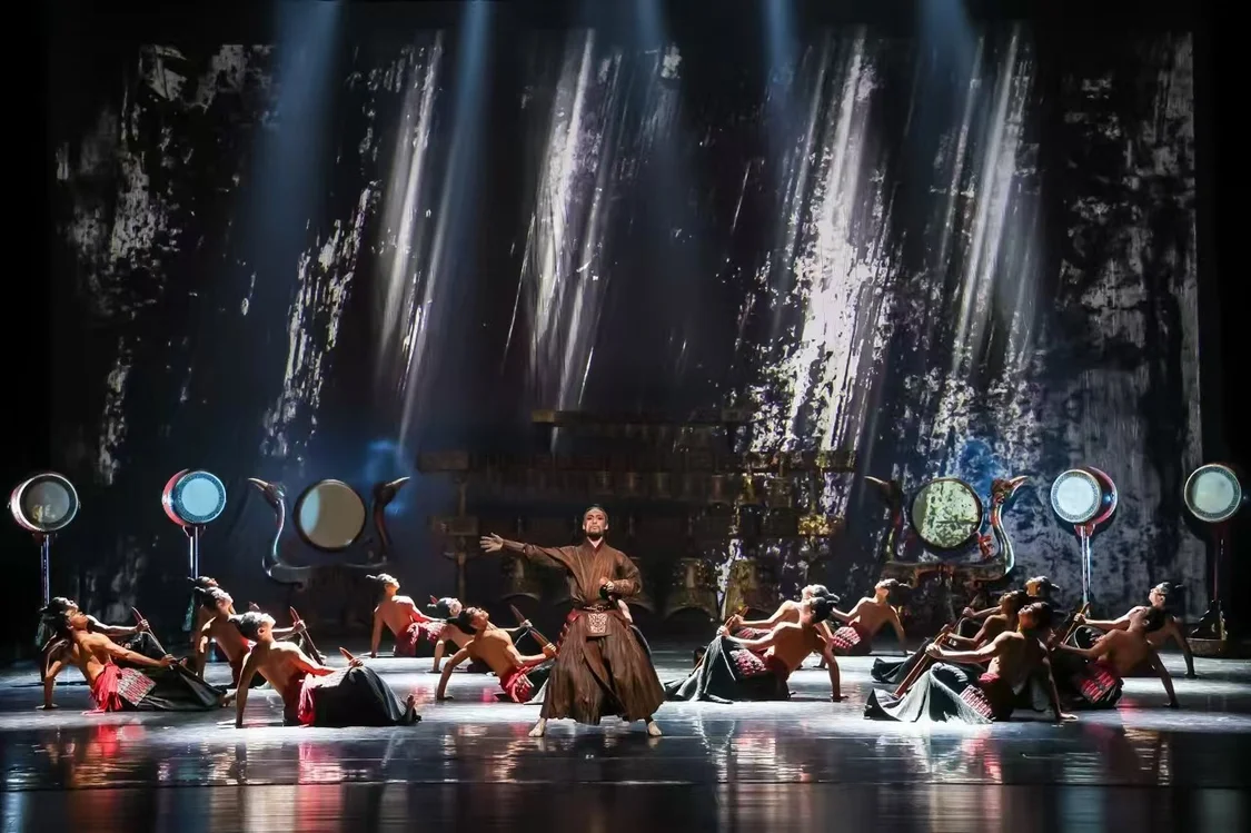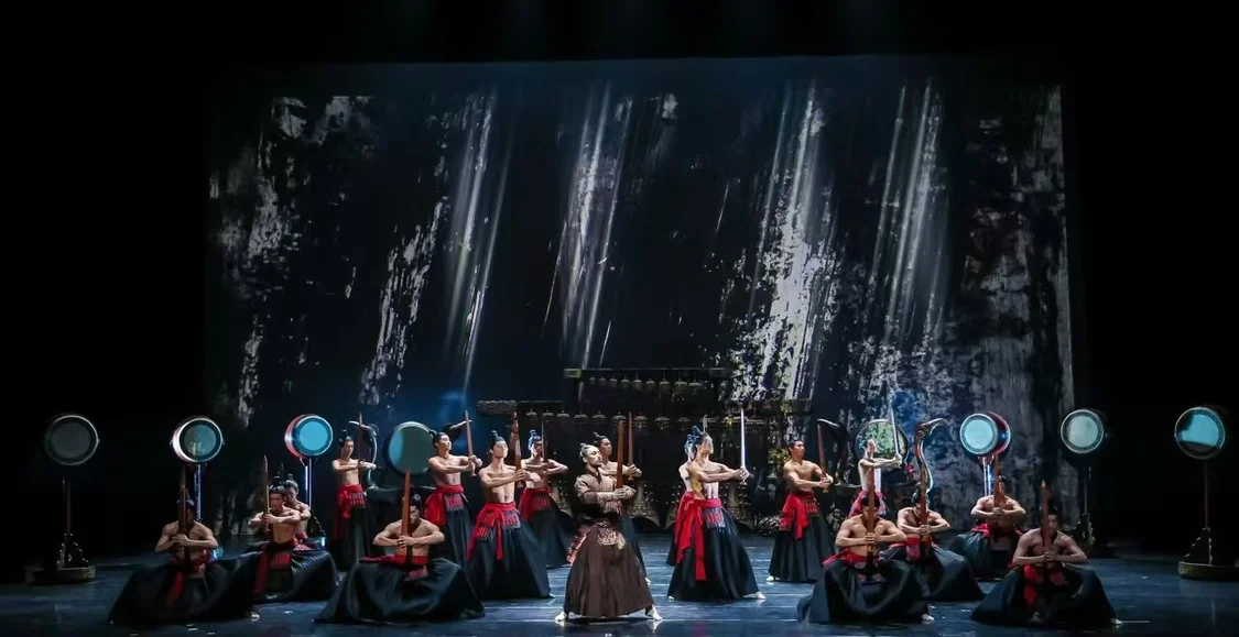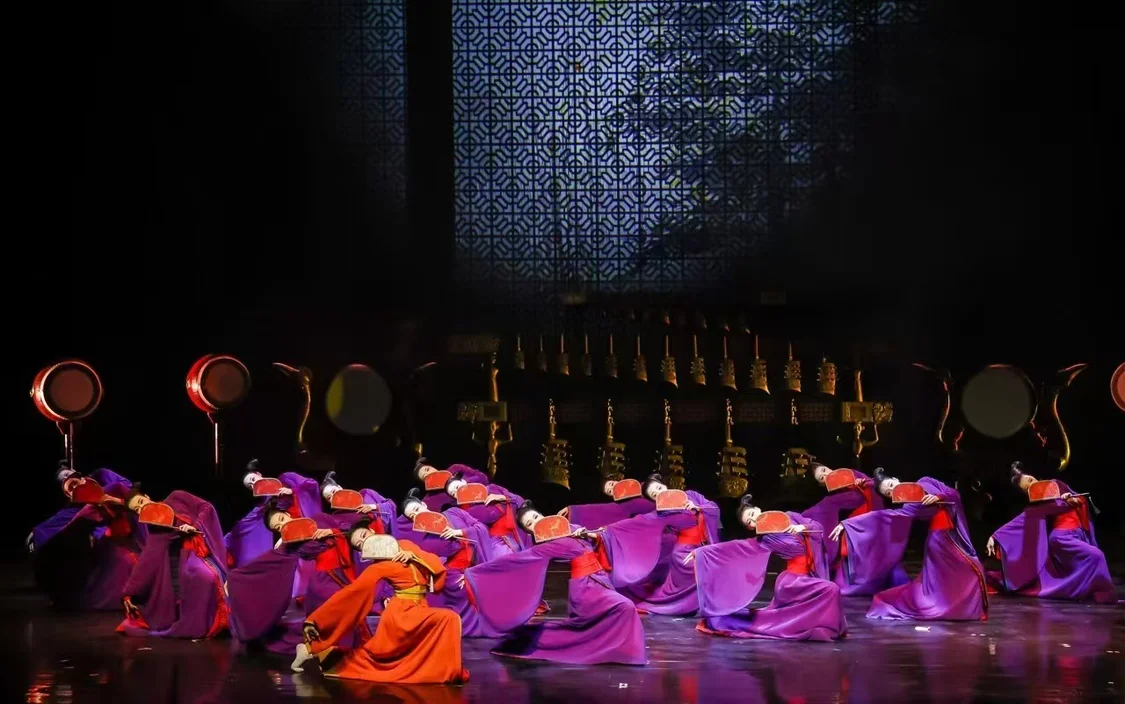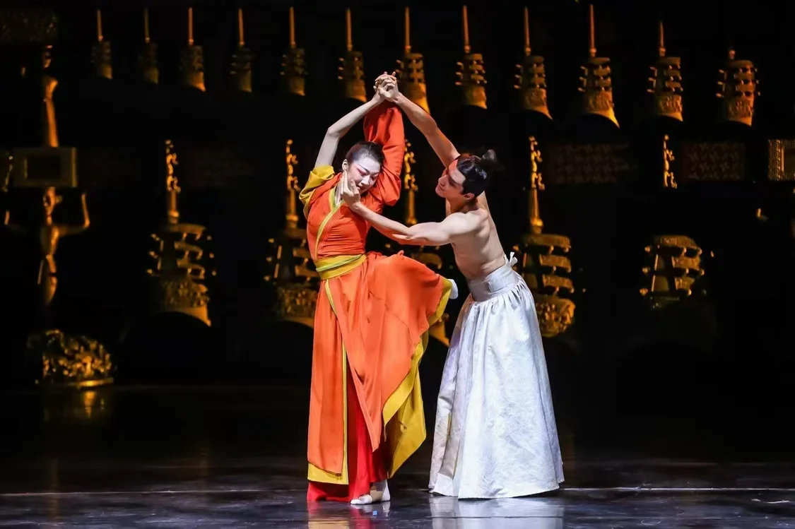 舞剧《乐和长歌》以古老的“编钟文化”为创作缘起,以春秋战国时期群雄逐鹿、风云激荡的历史背景为依托,讲述了虚构的“和国”与“乐国”之间合纵连横、纷繁复杂的政治历程,借剧中人物“乐和天下”的精神追求,展现出中华民族“礼序乾坤,乐和天地”的文化精髓,与当代构建人类命运共同体的理念相呼应,是中华优秀传统文化传承与发展的生动实践。