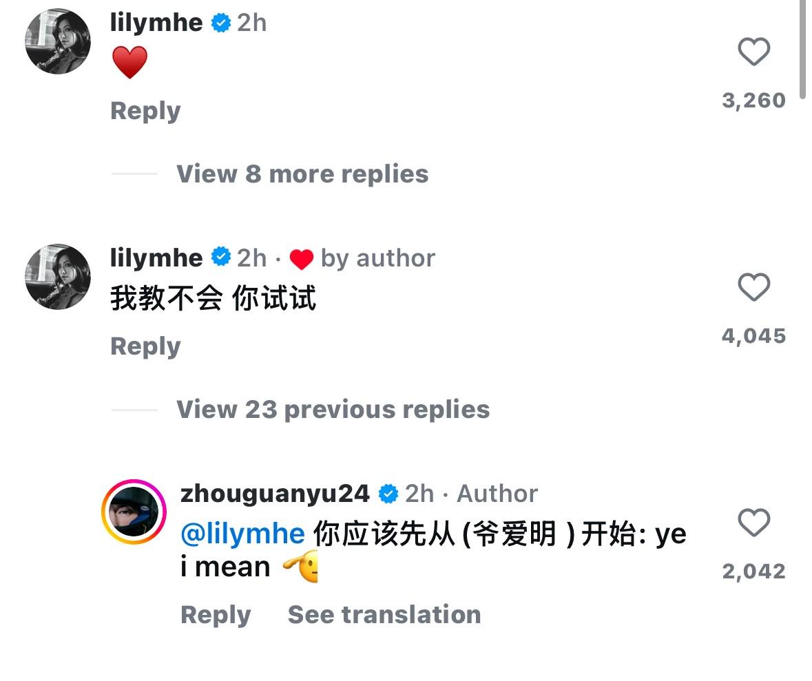 值得一提的是,阿尔本的女朋友、中国高尔夫运动员何沐妮在评论区说道:我教不会 你试试。周冠宇回复道:你应该先从(爷爱明)开始:ye i mean。(周冠宇在多次的采访中以yeah i mean作为开头)