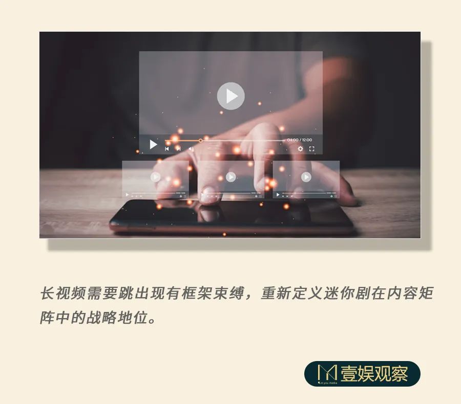 在此之下,壹娱观察进一步提出“短剧还是迷你剧,长视频平台如何夺回定义权”,长视频许应该重新审视自己最擅长的领域——精品剧集制作,将迷你剧放在更为重视的位置,毕竟它既保持了长视频平台一贯追求的制作品质和叙事深度,又能满足当代观众对更加紧凑、高效的观剧体验的需求。