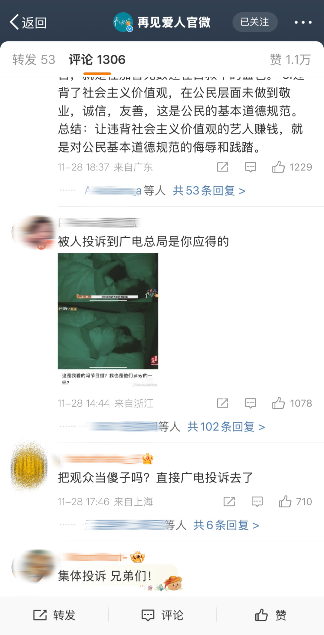 《再见爱人》官方微博评论区被抵制留言刷屏