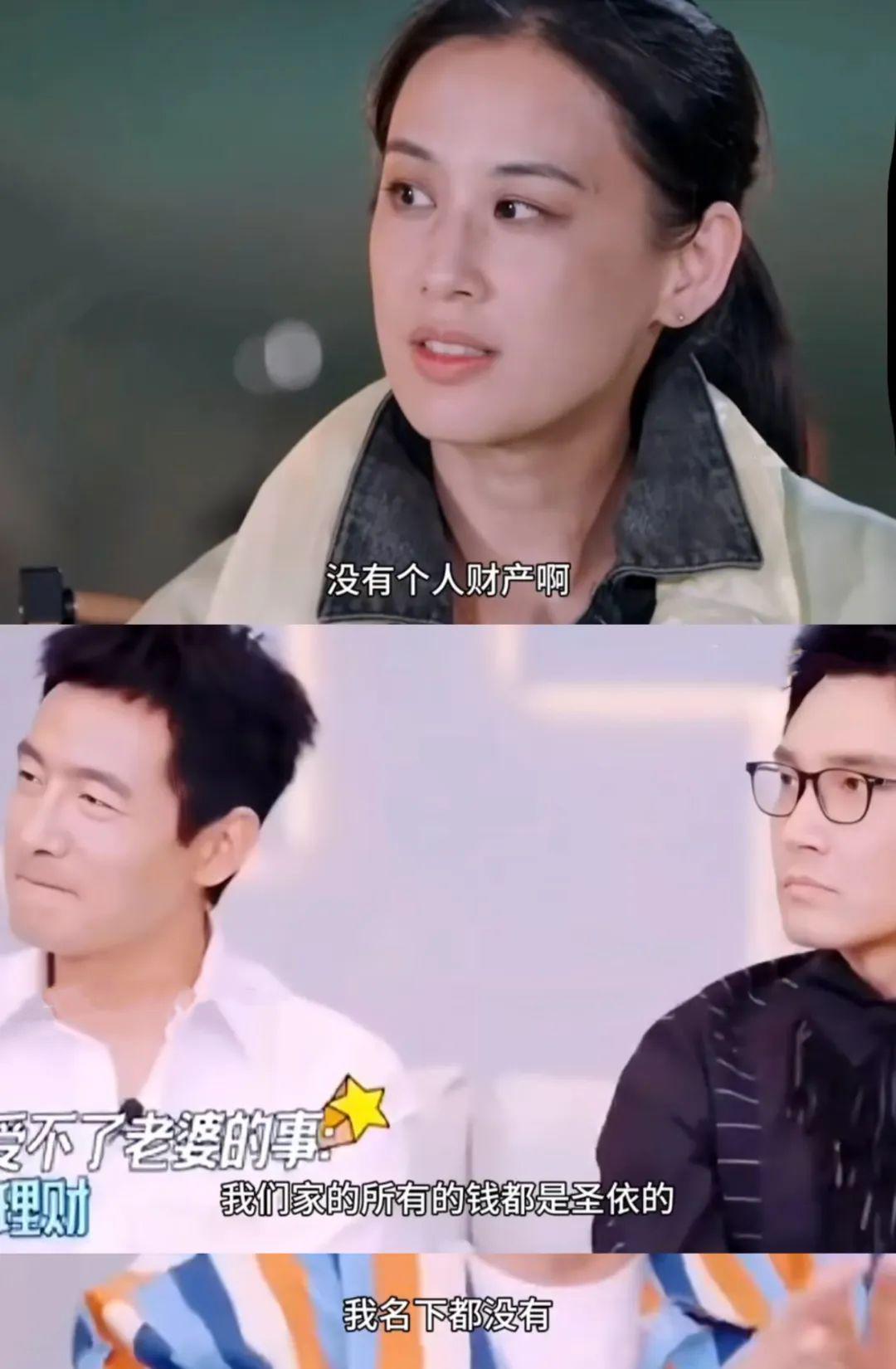 张泉灵询问黄圣依有无个人财产,黄圣依言之凿凿地表示“没有,我们家都是他(扬子)管钱”,而杨子曾给出完全相反的答案,“我们家的钱都在圣依那,我名下都没有。”