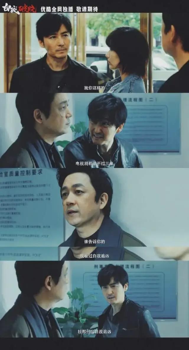 相比第一部,周巡与关宏宇的对话显得更加调侃!增加了“在电视剧里活不过三集”,“谁告诉你的,没看过白夜追凶”这种调侃对话,确实让人感到不适!大家想要看惊险刺激的侦破案件,而不是这种灌水的自嘲!