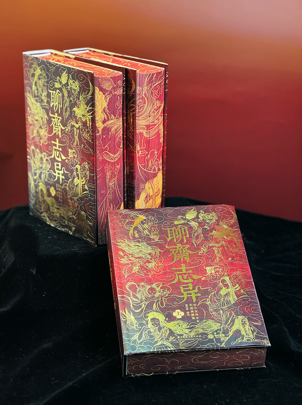 封面以黑红渐变为底色,上面用金线描摹出《聊斋》里的经典形象,既符合志怪的风格,又典雅端庄,充满古意。