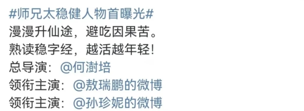 却不曾想,本以为敖瑞鹏前程堪忧的时候,敖瑞鹏来了一波大的:他将主演《师兄太稳健》。