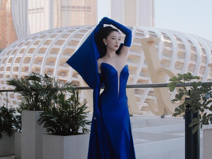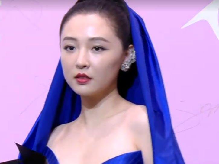 蓝色斗篷装在一众女星里也格外抢眼,别具一格。