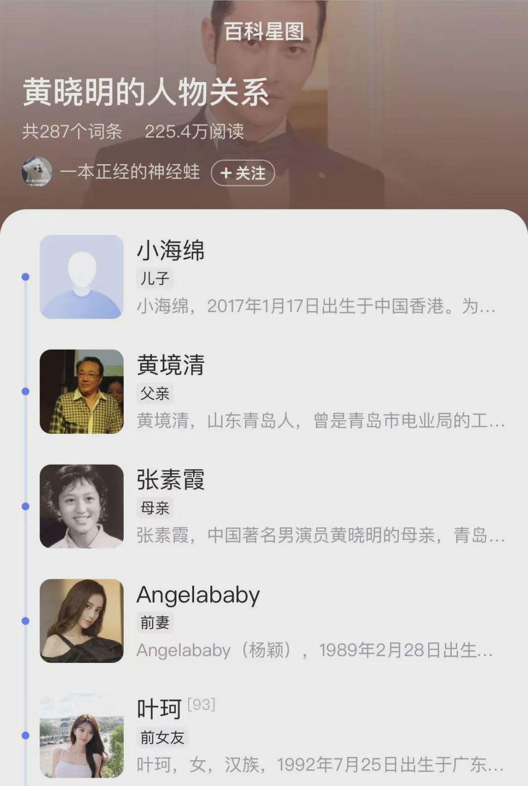 再看看黄晓明的百科,叶珂也显示为“前女友”的身份。