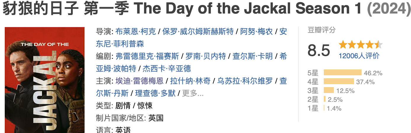 《豺狼的日子》改编自同名小说和1973年的经典电影版。