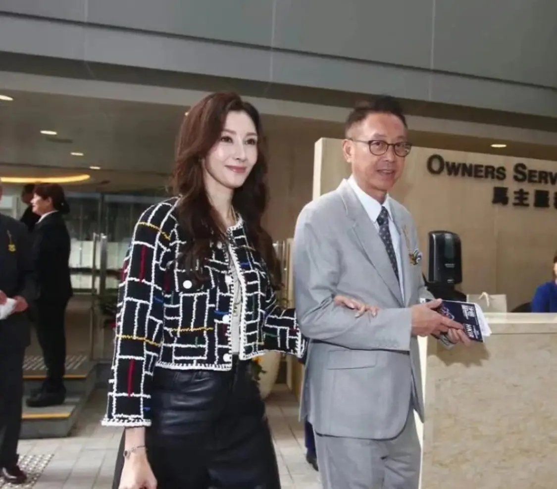 照片中,李嘉欣披着一头长卷发,身穿黑白格纹外套搭配黑色皮裙,脚踩黑色短靴,打扮时髦显优雅,不得不说李嘉欣这次的穿搭真的很好看呀,简单大方。许晋亨身穿灰色西装套装,看起来儒雅随和,绅士范十足。夫妇俩真的很有豪门气质。