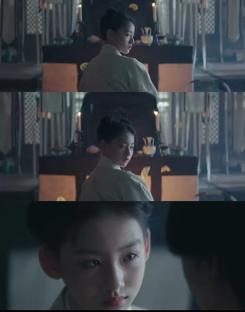 隐忍握拳的双手,眼中滴落的泪珠,端方正直的坐姿,气场丝毫未改变,将一国太子应有的气韵演绎的十成十。