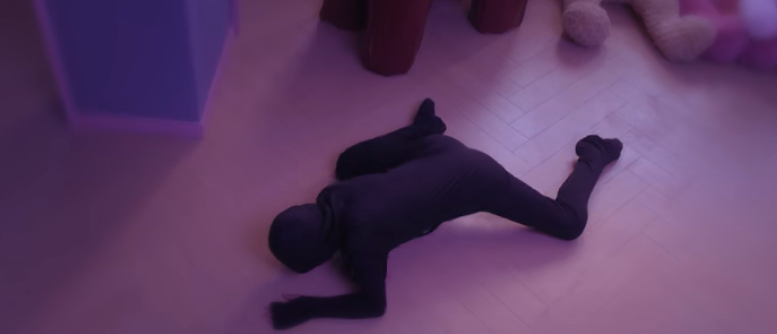 等哥几个吸得五迷三道(晕)后,她从玩偶中爬出来,避开监控像蜘蛛一般爬到客厅沙发后面。