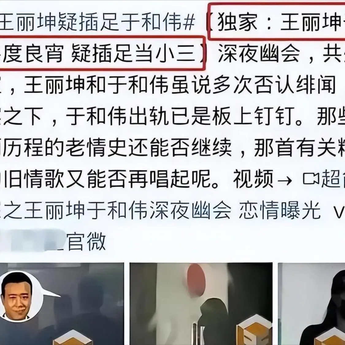于和伟呢,身为已经结婚的老前辈,按常理来说,和王丽坤本应该是八竿子打不着的呀,况且王丽坤当时也有男朋友,对方还是被誉为 “天涯四美” 之一的乔振宇呢。可命运有时候就是这么爱捉弄人,两人偶然间出演了同一部剧,就这样结识了。结果没过多久,娱乐圈里那有着 “绝佳狗仔” 之称的卓伟,就曝光了于和伟与王丽坤的 “恋情”。据说呀,他们俩不仅被拍了个正着,而且还实打实的共度良宵,那画面被拍下来,看着就好似一对亲密无间的小情侣一样。这一下,可是有图有真相呀,整个娱乐圈都炸开了锅,一时间哗然一片。王丽坤一下子就被打上了插足别人家庭的标签,而于和伟呢,原本在大家心目中是那个有涵养的前辈形象,也一下子沦落为了出轨渣男,名声受到了极大的影响。