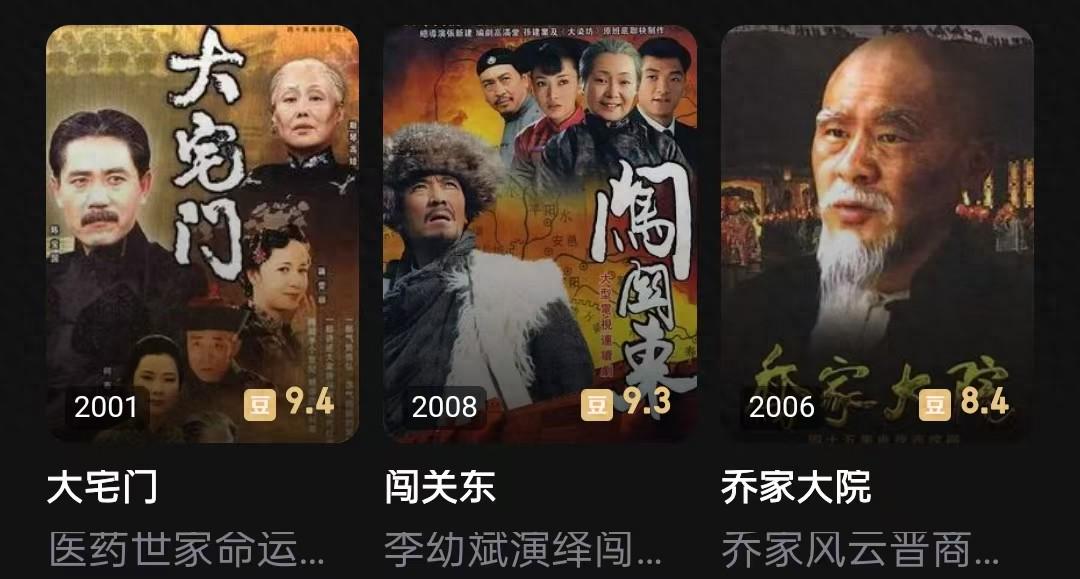想想过去的《大宅门》《乔家大院》《闯关东》但凡拎出来一个都是经典,实在很想念那段神仙打架的日子。