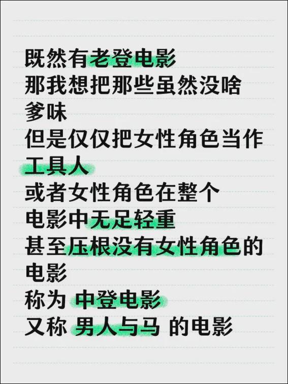 首先,长久以来我们就是一个男权社会,电影真实反映社会关系和重大事件,就会以男性为主角,这样就算“老登电影”吗?