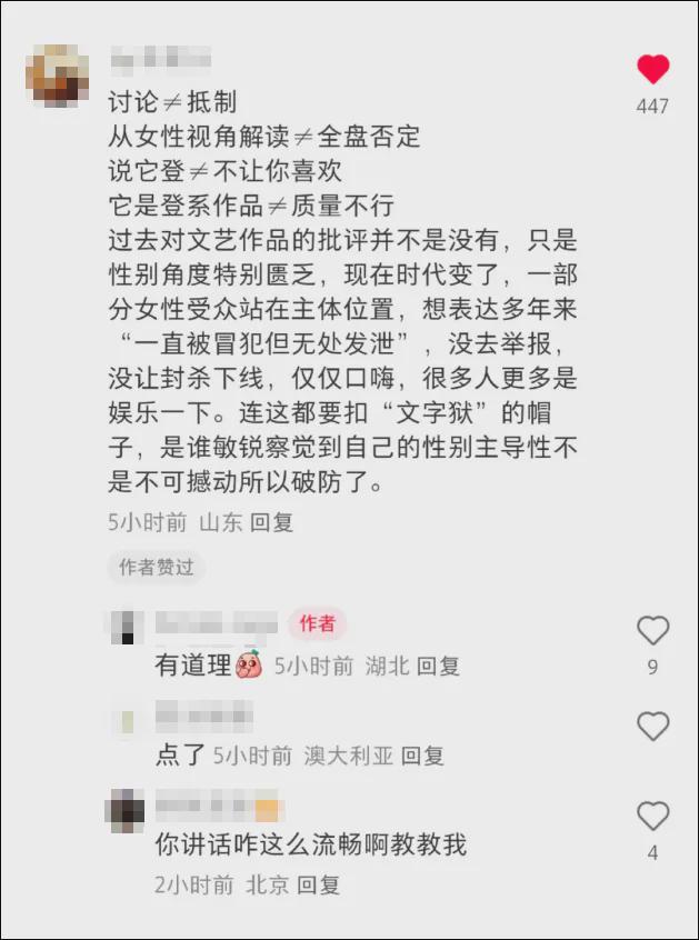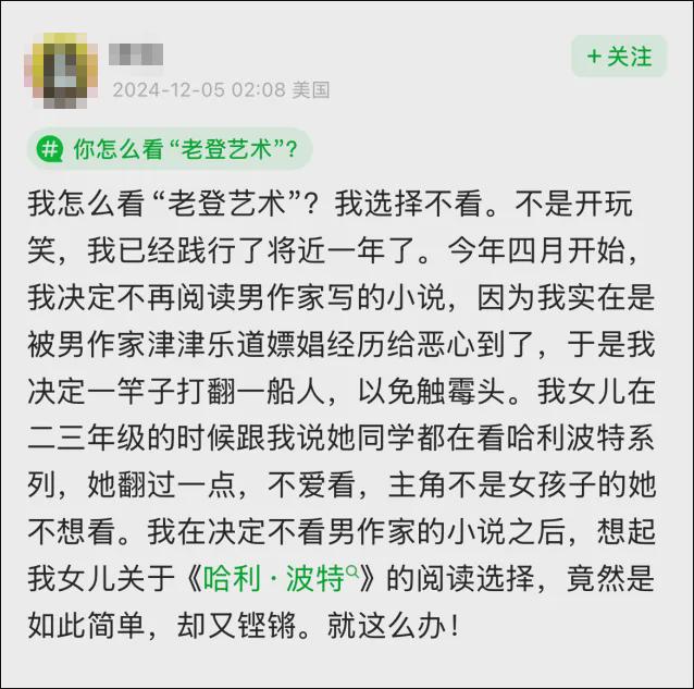 但这其中,也真的有人旗帜鲜明地和“老登艺术”做切割:“老登电影”我就是不看了,男作家写的小说,我就是不读了。