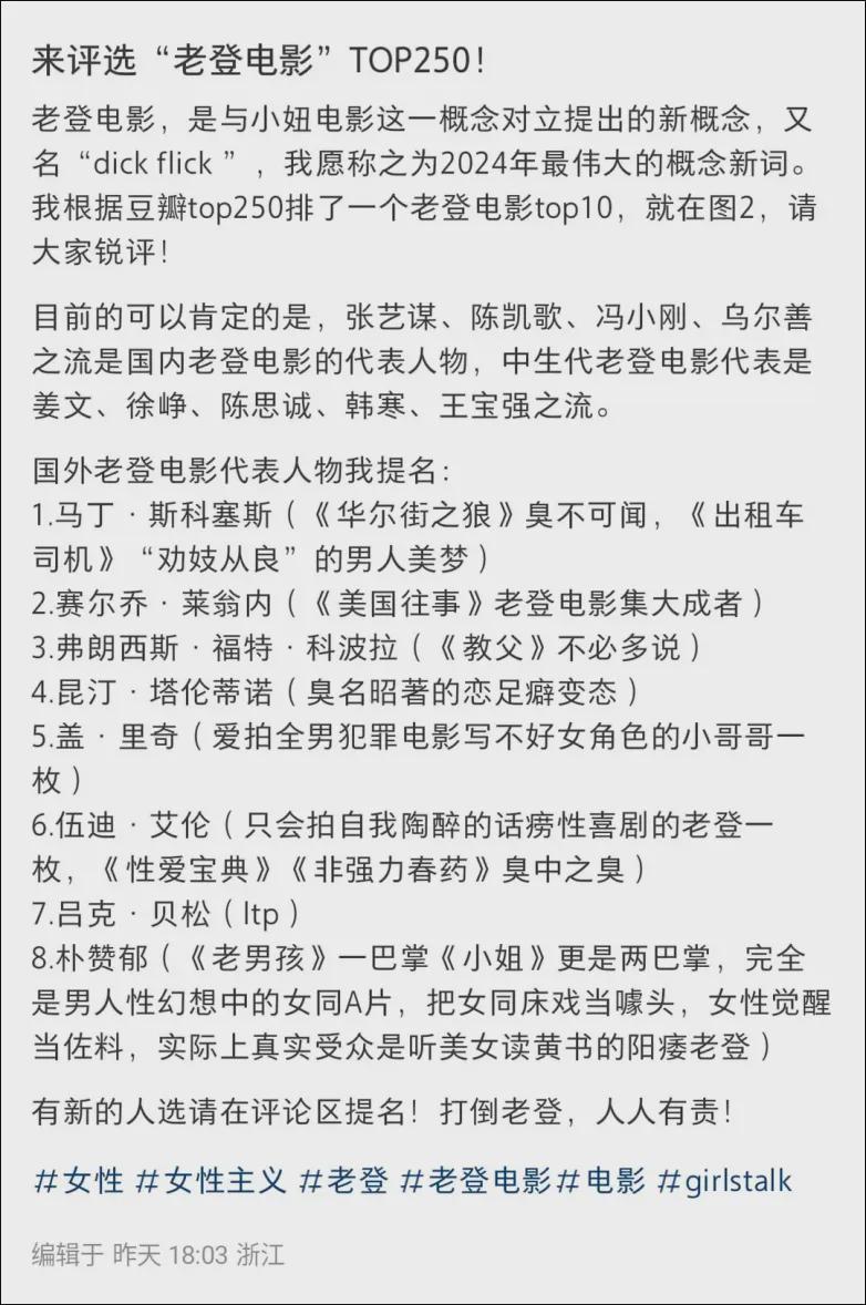 而现在,也已经有人开始讨伐喜欢“老登电影”的女性…