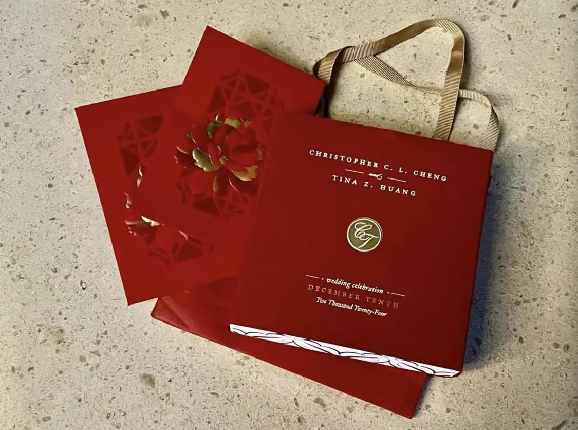 郑志亮伉俪虽然没有露脸,不过场内宾客公开了两人的照片。从照片来看现场的布置显得比较简约,胜在大气,主席台上的背景墙上的角落有一对新人英文名首个字母的图案,中间布置了很多的鲜花。郑志亮穿了西装,扎了领结,新娘的婚纱显得比较传统,价值虽然不菲,但也没有太多亮点。不过还别说,新娘长得很漂亮,据了解,郑志亮的太太名为Tina Huang,毕业于美国常春藤大学,从事金融行业,曾经就职于高盛,她与郑志亮是经过朋友介绍认识,两人交往多年,感情稳定后步入婚姻殿堂。