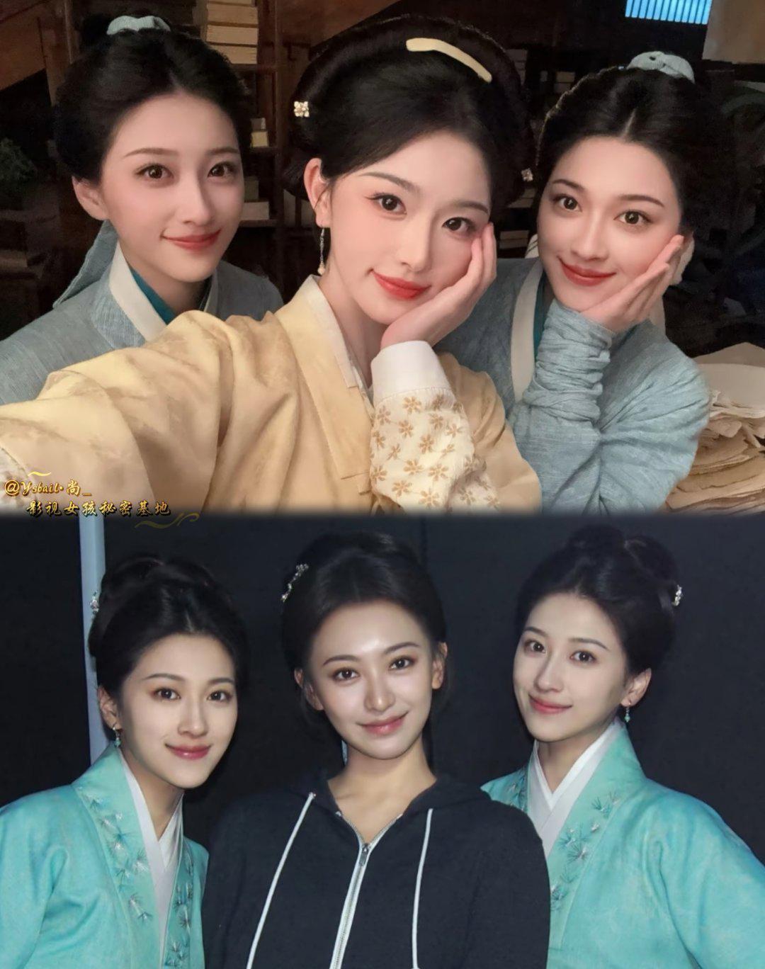 再度在《九重紫》里同台合作,她俩有女扮男装的造型,有不抢女主风头的女装造型,服装发型别无二致,不知道李昀锐和孟子义这些天天跟她们一起拍戏的演员分不分得清楚二人,反正观众很难一眼判定谁是素心,谁是素兰。