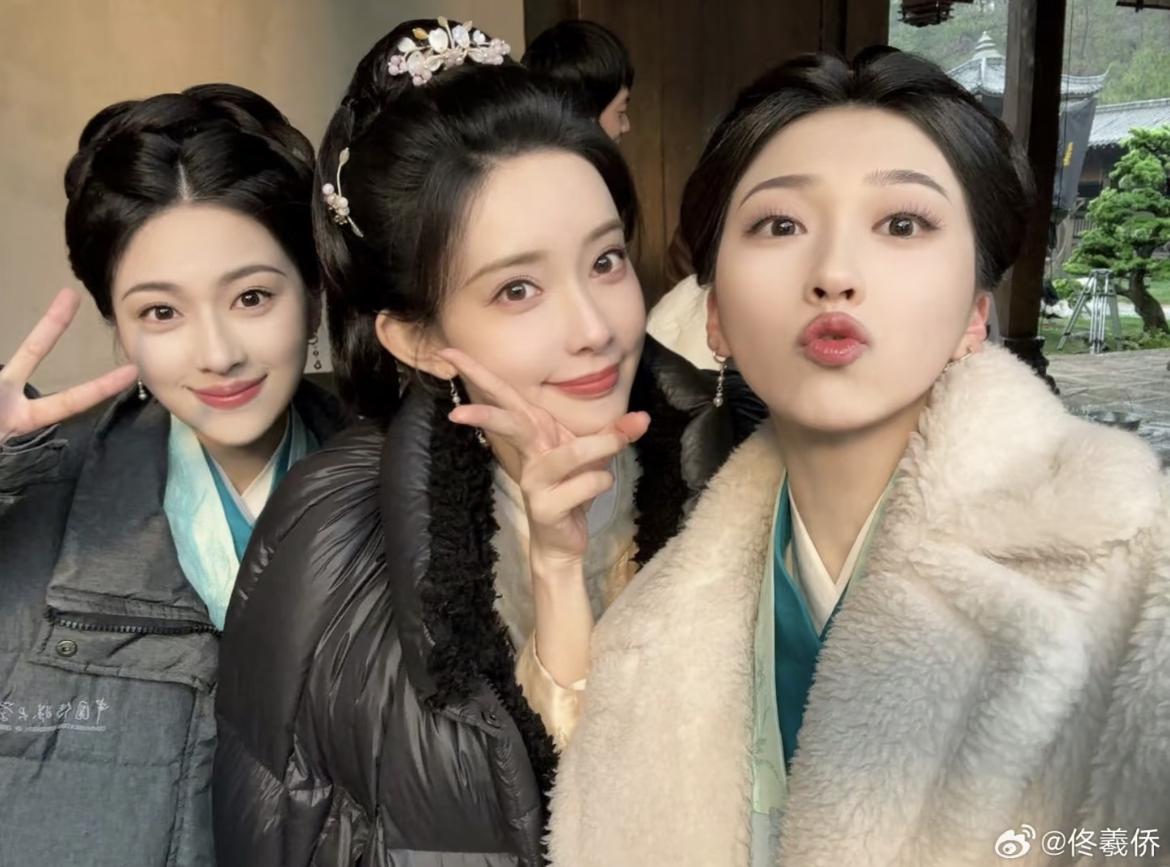 这两朵00花长相不输几位主角,跟女主孟子义、女二孔雪儿等人合影,姐妹俩一左一右,身高气质都不逊色,假以日时应该也是能挑大梁的。