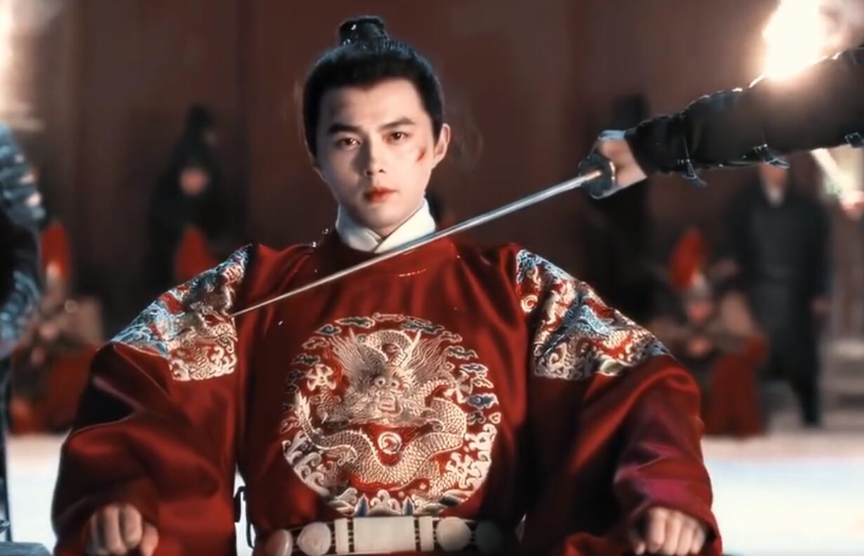 他扮演的太子,一袭红色蟒袍,端庄在那儿等着男主提刀上门,发丝在风中凌乱,眼神却坚毅决绝,故事感一下子就拉满,匆匆下线成了大家的意难平。
