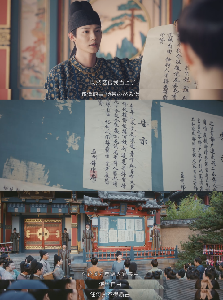 比如《蜀锦人家》,季英英面对的商业挑战主要集中在地方染坊之间的竞争、官场腐败和个别权贵人物的压迫上,例如花家的打压和牛五娘等人的阴谋。这些问题虽然也涉及到权力运作和社会关系,但在呈现方式上往往简化为个人恩怨或家族间的对抗,未能充分展示出当时经济体系内部的结构性矛盾和社会变迁的动力。