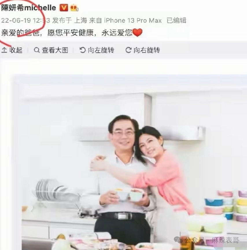 2022年的父亲节,陈妍希的爸爸看起来还很健康。
