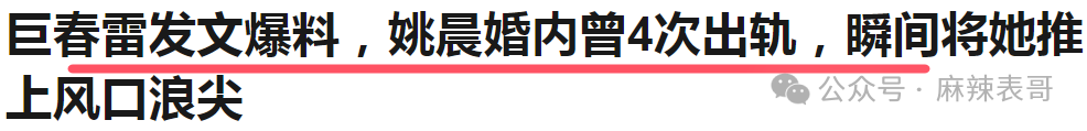 2014年,巨春雷爆料是姚晨婚内四次开小差,凌潇肃郁闷不已,才向唐一菲倾诉,于是两人走到一起。
