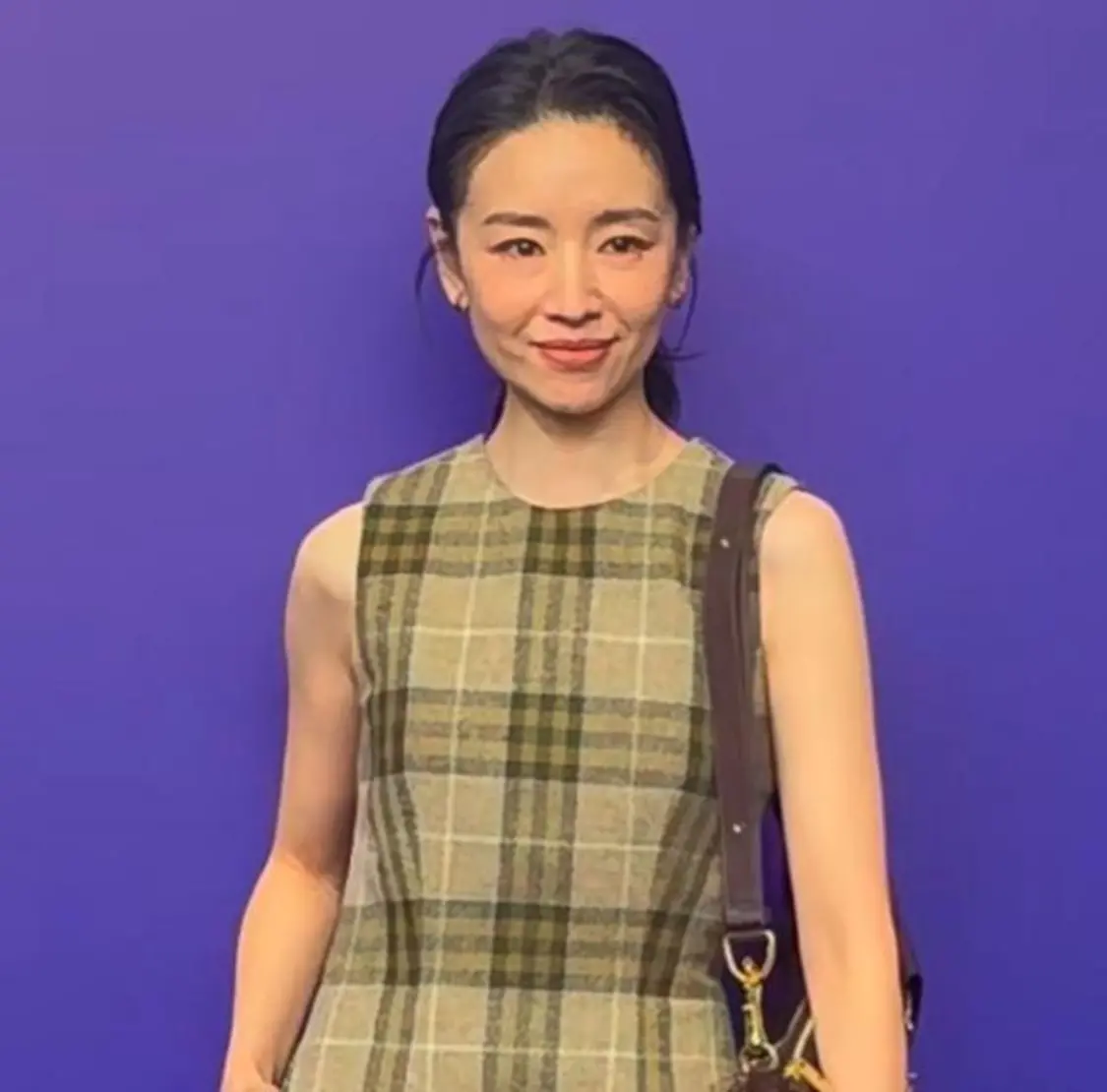 或许是当天没有休息好,董洁的双眼微红,穿着一件格子连衣裙微笑面对镜头的她看起来老了不少。