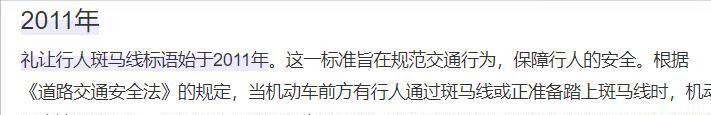 这几个字本身没什么问题,但实际上“礼让行人”出现在斑马线上的时间是2011年。