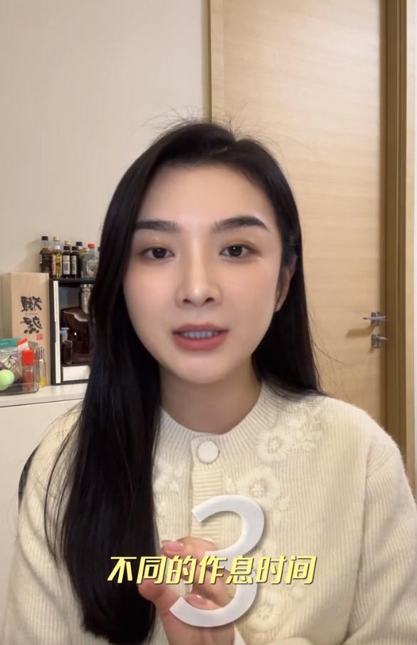 因为吴雅婷现在做直播,经常晚上12点下播,收拾完可能凌晨两三点才能入睡,而对孩子来说,晚上可能10点就要上床睡觉,早上6点半到7点起床,这样她的作息时间其实跟孩子是不同的。