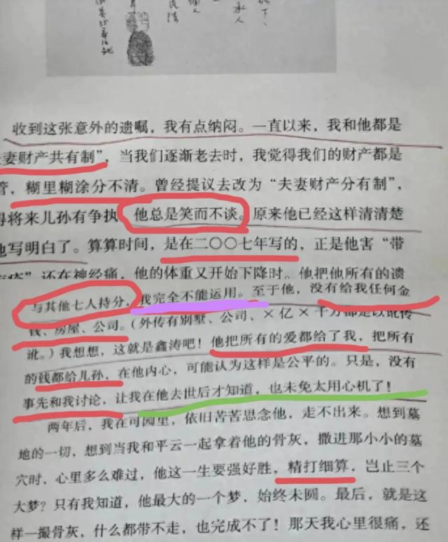 琼瑶曾经对平鑫涛说过,要不我们把财产理一理,省的以后分不清,而平鑫涛则笑而不语,实际上他早在2007年,就已经立好了遗嘱,没有给琼瑶留一分钱。
