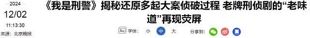 参考资料:光明网:2024-12-06:《我是刑警》:真案触真情的刑侦剧为何全民叫好北京晚报:2024-12-02:《我是刑警》揭秘还原多起大案侦破过程 老牌刑侦剧的“老味道”再现荧屏