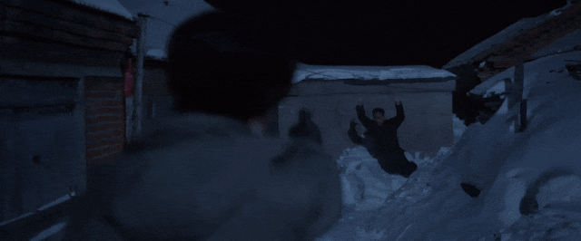 第二处,是终于抓到了犯罪嫌疑人,秦川举枪相对的片段。