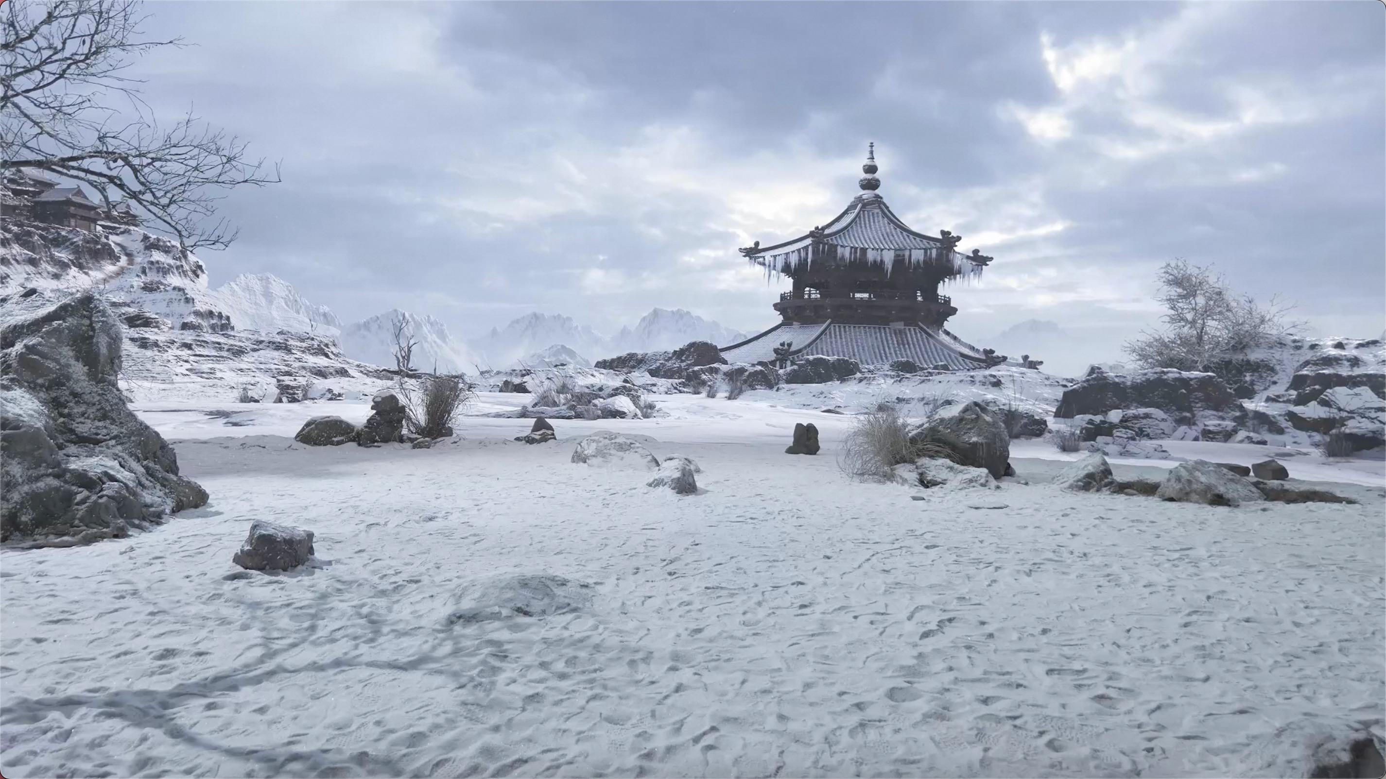但在使用虚拍后,这些开销得到极大的缩减。就从《师兄太稳健》的这场山顶雪景戏来看,传统的雪景搭建需要大量的物理材料,一个600平米的实景搭建需要大约15吨的“雪”,而人工造雪通常使用的是硫酸镁等化学产品,不仅对环境有污染,还需要大量的人力物力进行运输和铺设。