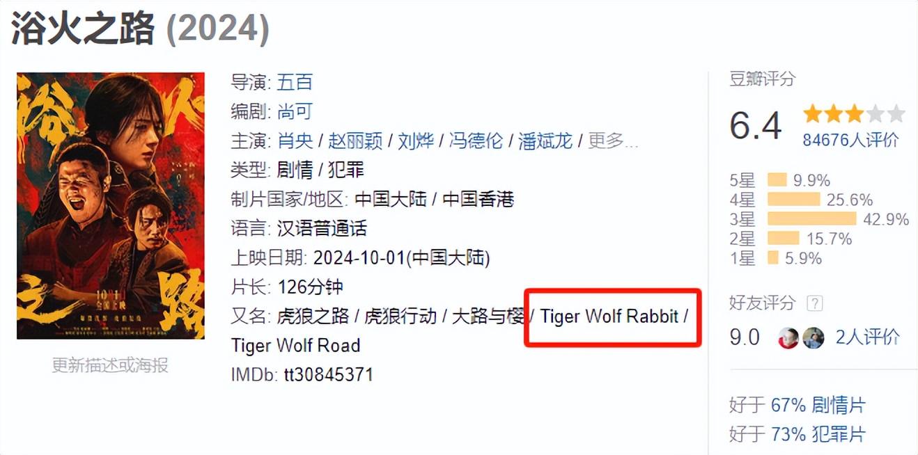 虽然豆瓣分只有6.4,但番茄君认为这个分数偏低了。因为光谈质量,《浴火之路》是有实力竞争国庆档第一的。