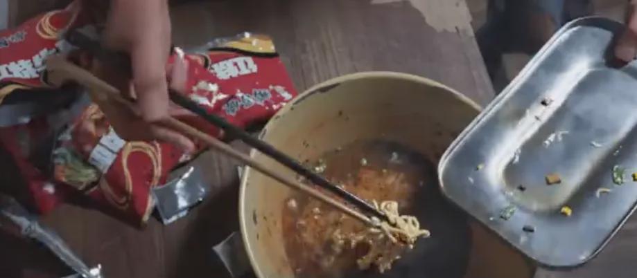 窄窄的走廊,挤在5平米的小屋子里面吃泡面,却为了让父母放心告诉他们自己吃得很好。