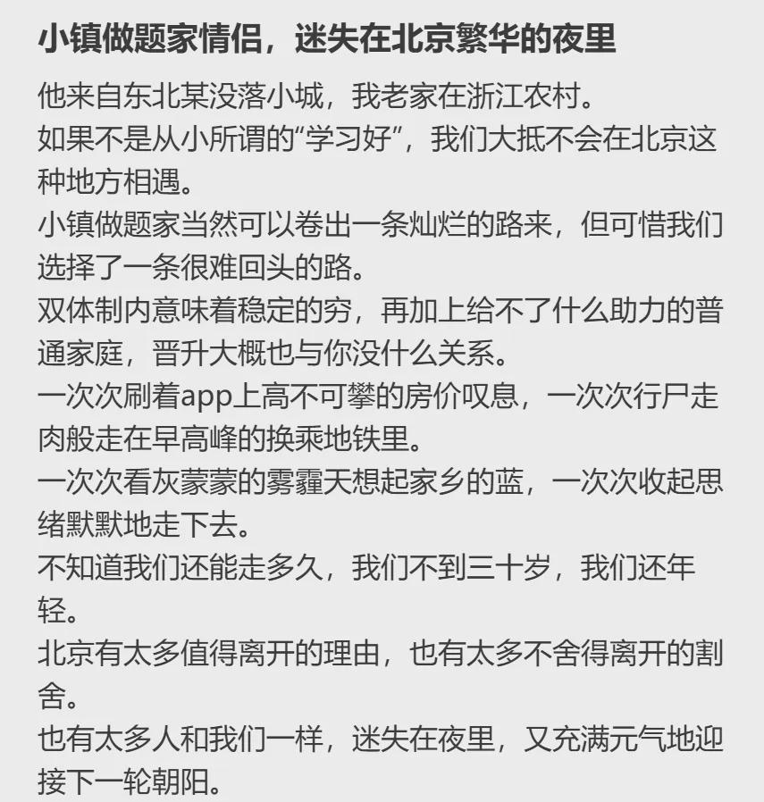 选择了一条很难回头的路,一次次刷着app上高不可攀的房价叹息,一次次行尸走肉般走在早高峰的换乘地铁里。