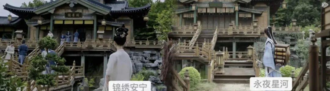 除此之外,标准化的酒楼、宅邸……甚至同一棵谈心的树。对于更多人而言,现在的剧根本不怕被人看出来是同个场景,更是敷衍到换个牌匾就能了事,拉个幔都嫌费力。