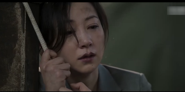 还有最后的绑架戏,韩雪被涂满江绑来当人质,一开始她没有哭,强忍着不掉泪。直到鲍晨焰来救她,她才情绪激动起来。但她很快又想起来,这里有炸药,然后对鲍晨焰摇头,眼泪都快掉下来了。直到鲍晨焰为了她向涂满江下跪,她才终于绷不住,转头不忍再看,再回过头来的时候,眼角有一滴泪滑落。