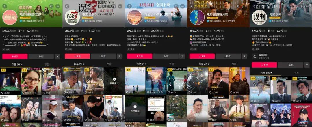 这批项目中,算下来也仅有《误判》在兢兢业业按照经典套路投入短视频宣发。而片方营销力度的收缩也最直接影响到了数据,截至发稿,几部影片中官抖数据最好的《骗骗喜欢你》总点赞不过645w 。
