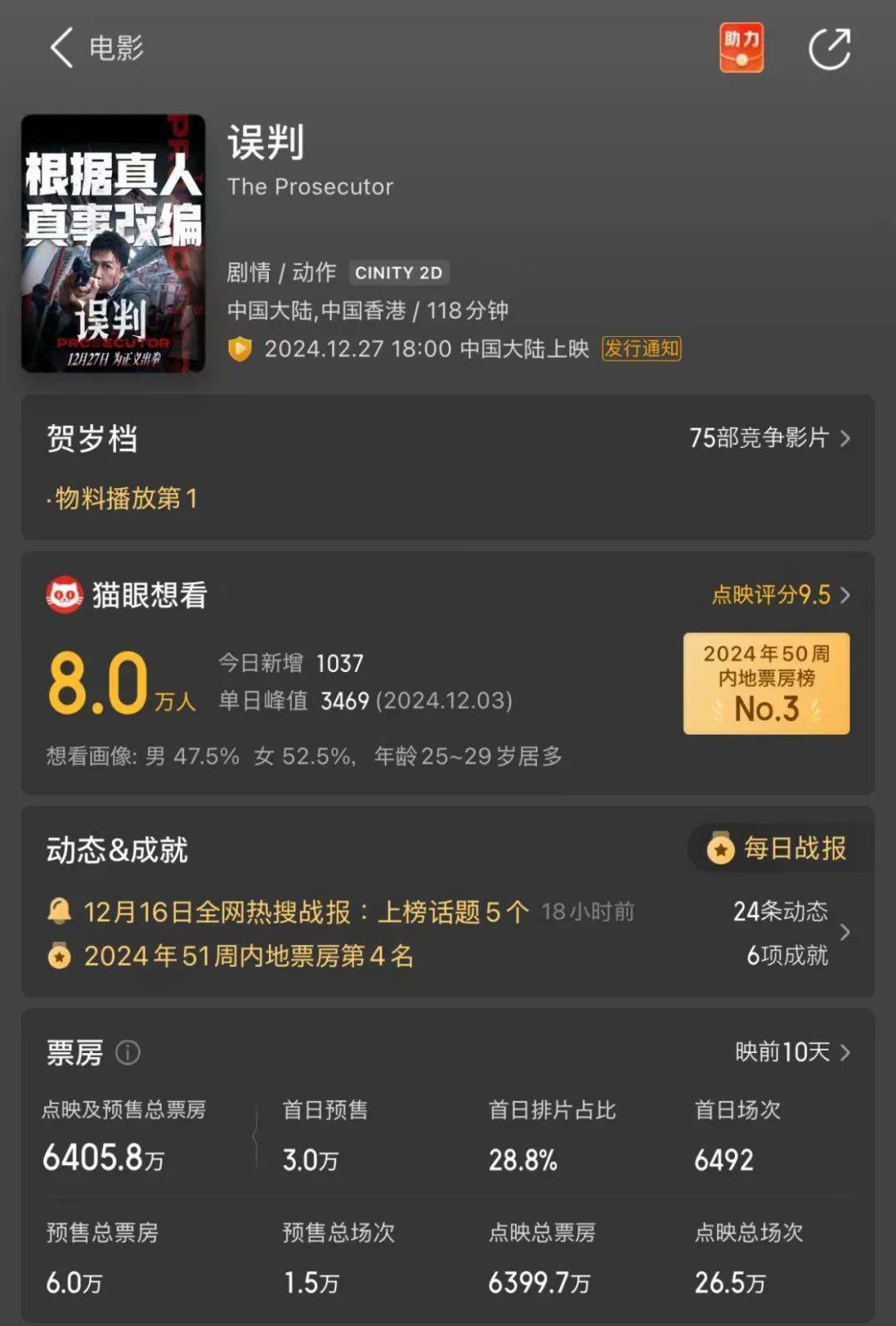 作为年内最后一个有点存在感的档期,今年跨年档汇集了《小小的我》《误杀3》《“骗骗”喜欢你》《误判》《名侦探柯南:迷宫的十字路口》不多不少六部重点影片(未计入《帕丁顿熊3》)。