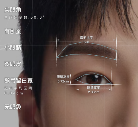 再看眼睛,小林的眼睛高度比较低,同时眼角偏尖,因此这样的眼睛基础笑起来就会很像狐狸眼睛尖尖的样子。